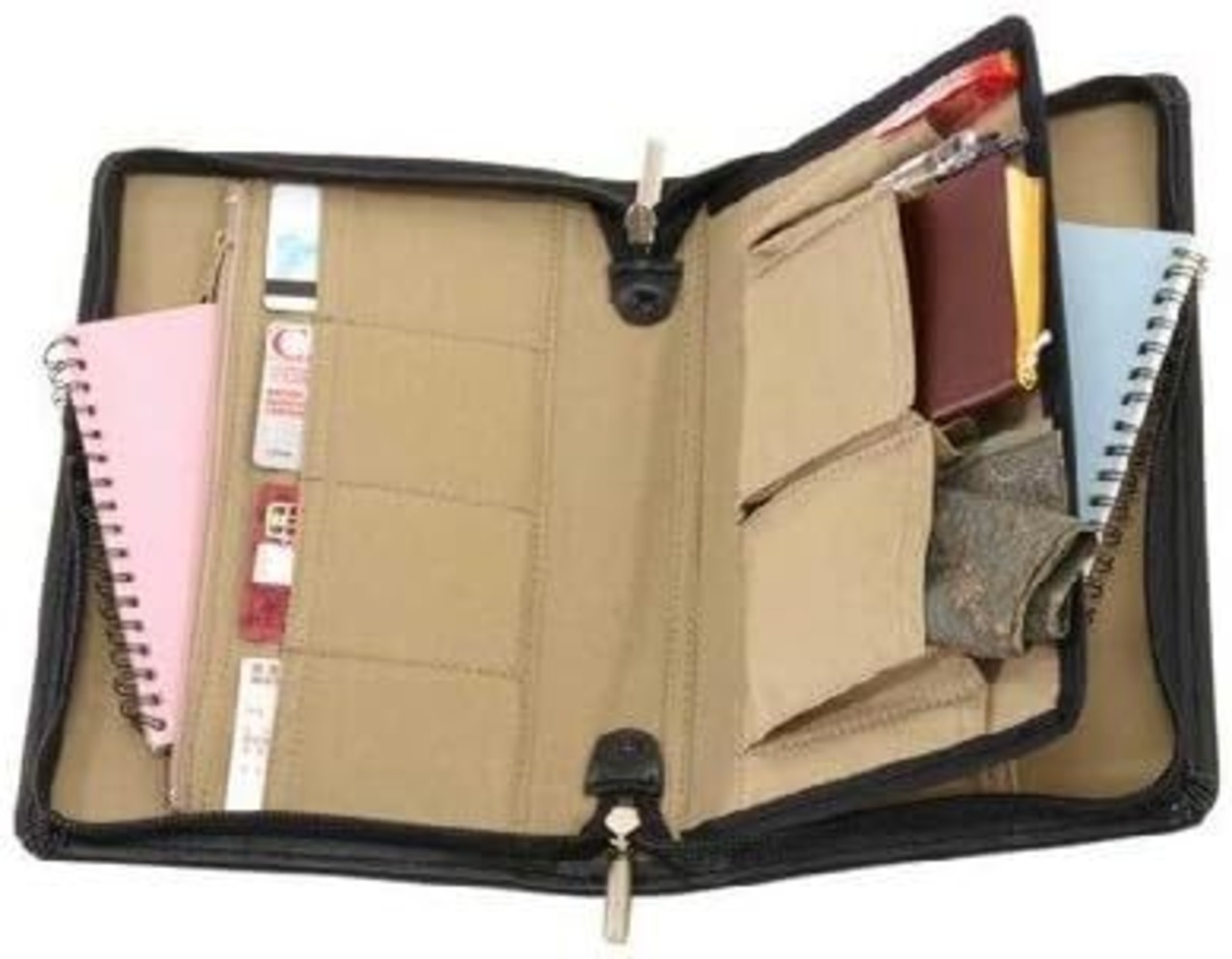 本体内部:仕切り板、ササマチポケットX2、ペン差し、ファスナーポケット、カード入れ(4枚収納)、アテポケット